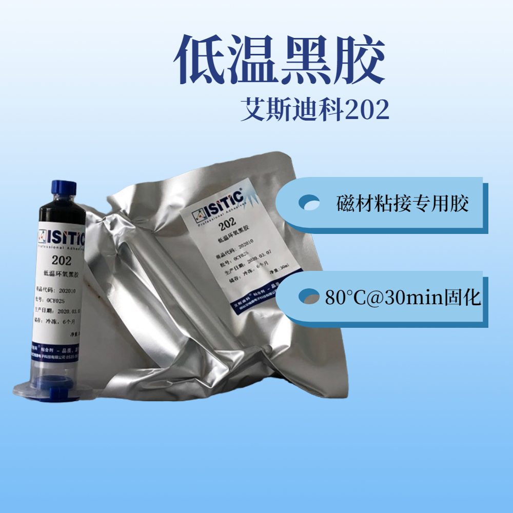低溫環氧膠(低溫黑膠、環氧黑膠)——艾斯迪科202,這是一種單組份低溫固化環氧膠,無溶劑,需加熱固化的航空級粘合劑,該環氧結構膠是專為聲學行業的磁路粘接所設計。